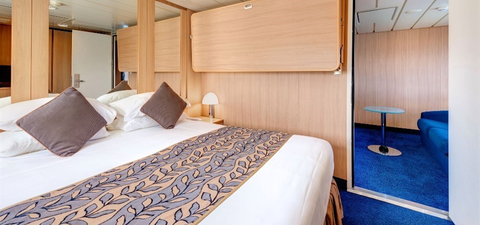 - zakwaterowanie w 2-osobowej kabinie wybranej kategorii (klimatyzowana, z łazienką, telefonem, telewizorem i radiem satelitarnym)*