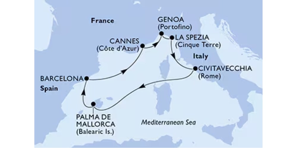 ✓ Odwiedź Włochy, Hiszpanię, Francję podczas jednego rejsu