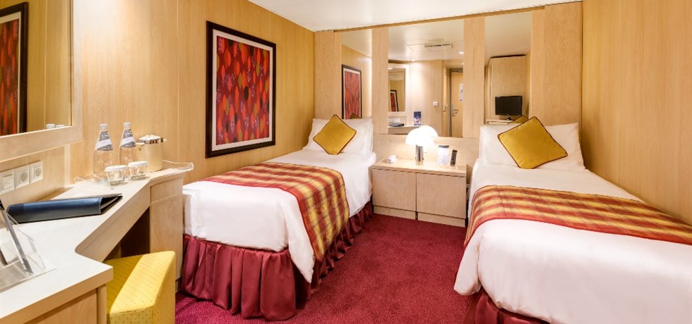 - zakwaterowanie w 2-osobowej kabinie wybranej kategorii (klimatyzowana, z łazienką, telefonem, telewizorem i radiem satelitarnym)- pełne wyżywienie na pokładzie: śniadanie, obiad, kolacja, napoje podstawowe do posiłków bufetowych - śniadanie: kawa, herbata, woda, soki z dystrybutorów (na szklanki); obiad / kolacja: woda z dystrybutora (na szklanki)