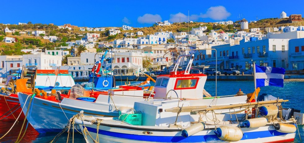 – 12 EUR za osobę za port: Mykonos, Santorini